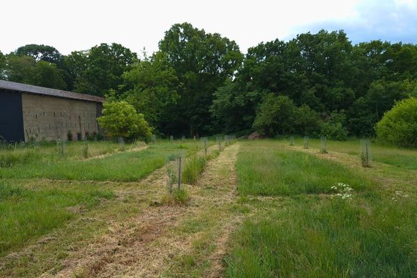 Im Rahmen des Projekts wollen Tanja und Florian 120 weitere Apfelbäume auf einer Fläche von rund 1,5 ha pflanzen. Hier stehen seit dem letzten Jahr bereits 85 junge Pappeln in Reihen. Die Apfelbäume sollen Ende des Jahres im sogenannten Alley Cropping Design ebenfalls in Reihen gepflanzt werden. Die Jungpflanzen aus der Baumschule haben drei unterschiedliche Wurzelqualitäten, werden mit Erdballen, wurzelnackt und mit Luftwurzelschnitt geliefert. Sie werden nach einem ausgeklügelten Versuchsdesign zusammen mit speziellen Mykorrhiza-Pilzen und wasserspeichernden Biogelen in die Erde gebracht. Zwölf Kombinationen sollen erprobt und die Entwicklung der Bäume unter den unterschiedlichen Bedingungen dokumentiert werden.